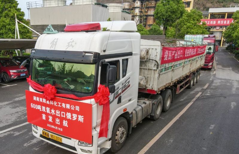 2022年8月,首次通過公海聯運跨境卡車班列運輸方式出口400噸高純雙氧水至緬甸后,雙陽高科陸續小批量打入俄羅斯市場,產品質量與服務接續獲得肯定。2023年4月份,通過銷售團隊努力,再一次先款后貨成功簽約俄羅斯客戶,獲得600噸大訂單。