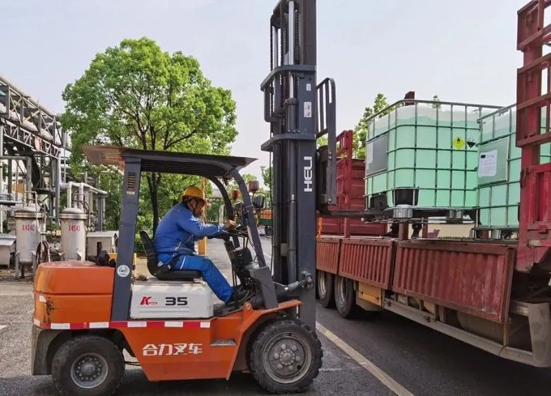 600噸雙氧水,500個噸桶,需要一個個清洗、灌裝、轉運,貼封標簽、扎帶加固。為確保訂單按期發貨,雙陽高科生產黨支部黨員、濕化學品車間副主任楊云強發揮先鋒示范帶動作用,班長梁升放棄探親休假堅守一線,新進員工主動積極參與。通過濕化學品車間全體員工、叉車司機及供銷部同志立足崗位創價值,終于在規定時間完成生產任務,產品各項指標均處于優秀值范疇。